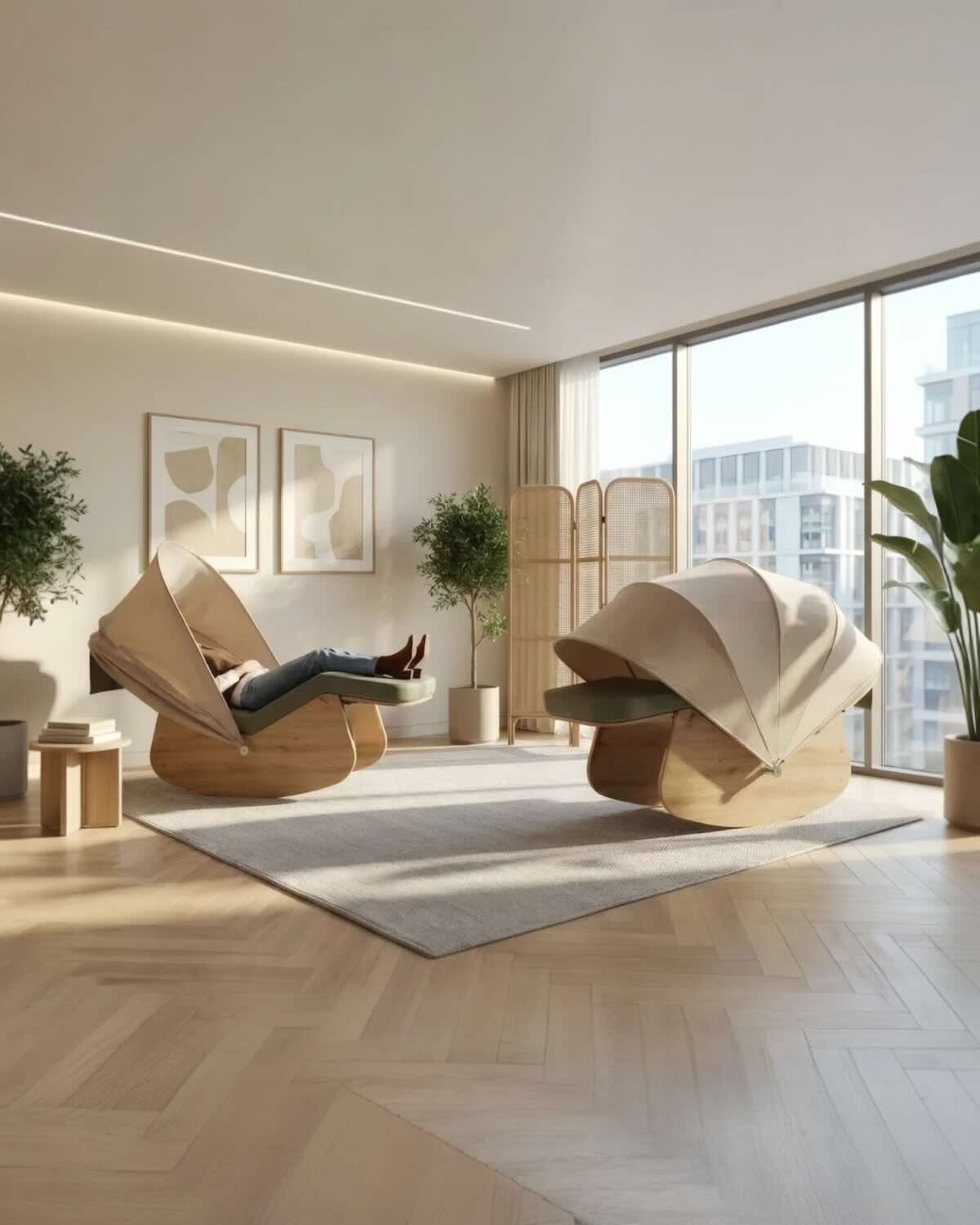 Deux positions conçues pour favoriser un ressourcement optimal, en respectant les principes d’ergonomie et de confort.