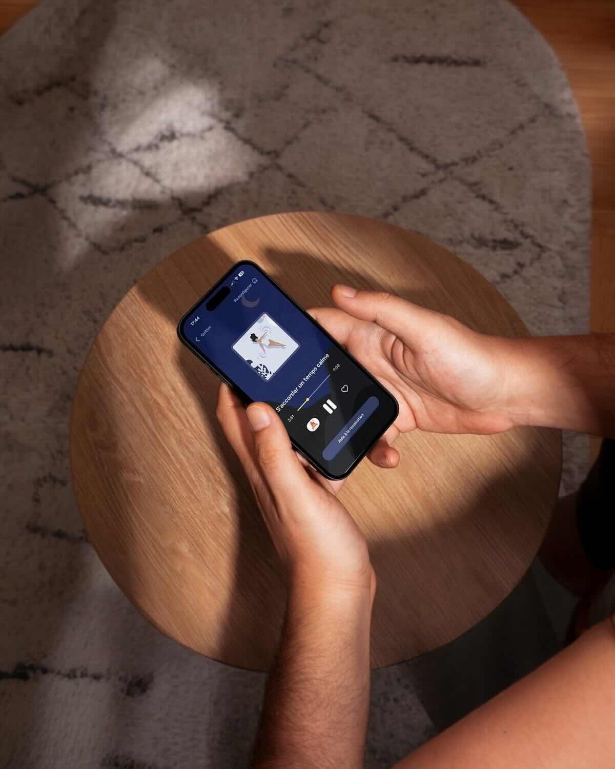 Cette application est téléchargeable gratuitement, elle donne accès à une plateforme de réservation de créneau, afin de connaître en temps réel le statut d’utilisation d’un cocon de sieste, ainsi qu’à des audios de relaxation déclinables en 4 durées, ces derniers permettent de créer une atmosphère apaisante pour les professionnels.